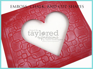OK I promise…just one more card! This time I decided to emboss the cardstock (with the Pebbles Impressabilities), chalk the embossed portion with white pigment ink, and then cut a heart from that piece. You can