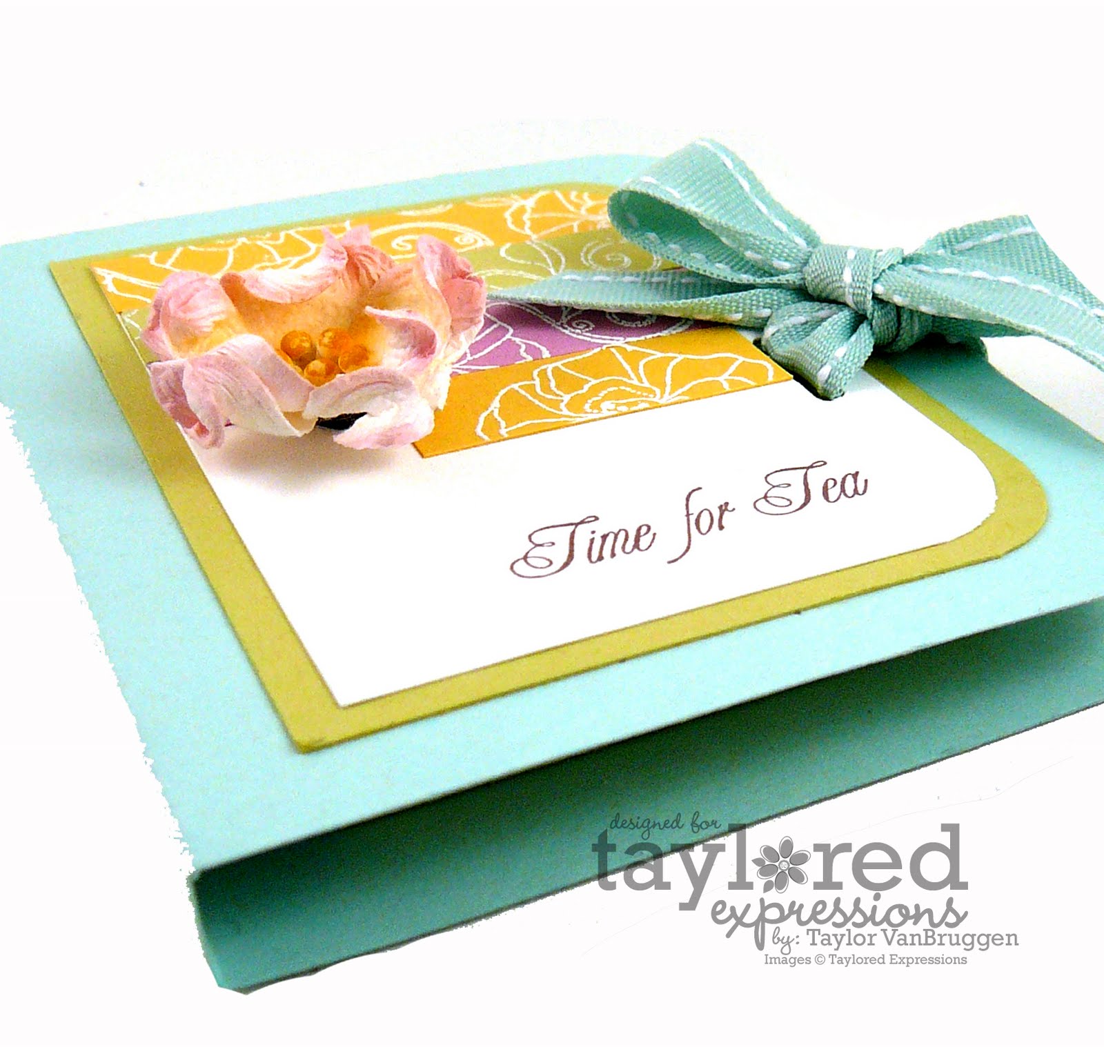 Since I had a few leftover strips of embossed cardstock (and I didn’t want them to go to waste!), I decided to create a single tea bag folio. It was super quick and simple and I think it’ll be a fun little gift for my tea-loving friends! I used my Copic airbrush system again… this time on a pink & white apple blossom. I airbrushed the center of the flower (the white part) with yellow Copic marker. Well, that’s it for today…thanks for stopping by!
