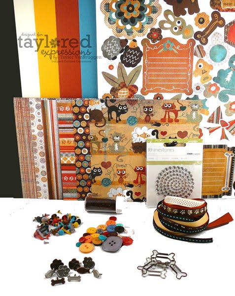 The rest of the ingredients on this card are from the Pet’s Place Project Pantry! I’ve fallen in love with the Basic Grey Max and Whiskers patterned paper which is the cornerstone of this kit along with lots of fun coordinating embellishments.