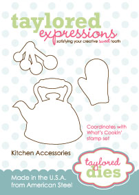 We’ve been busy preparing for our November release and we have some fun things in store for you this month! It’s finally time for the Baker’s Dozen and I to begin sharing our sneak peeks! So what’s on the menu today? The stamp set is called What’s Cookin’…. an adorable collection of kitchen icons illustrated by Nancy McKinney for our Whimsical Wishes collection. We also have some fun and fabulous new dies to coordinate with these stamps and you’ll be able to see some of them up close and personal in my sneak peek projects below. So let’s dig in!