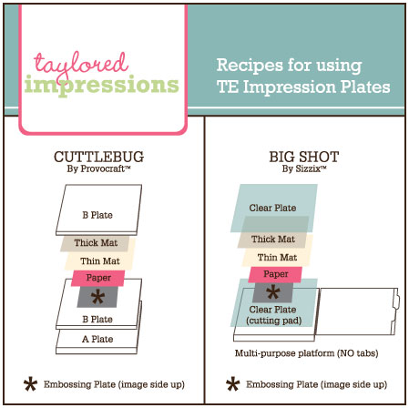 today so keep your eyes peeled for the fabulous backgrounds! I know lots of us are visual learners, so I’ve created a video to show you how Taylored Impressions work. We also have a useful chart for you to reference (see above) when you’re ready to use your Taylored Impression plate! You can find all of the information on our new impressions plates on our About our Dies & Impressions page HERE.