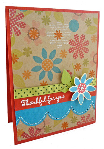 In addition to our first impression plate, of course we have some new stamps to show you too! Today we’re sneaking peeks at Friendship Blooms, a beautiful set of flowers and friendship sentiments designed by Nancy McKinney as part of the Whimsical Wishes collection. It has been ages since I created a one sheet wonder and this set is perfect for it! So I grabbed a piece of Kraft cardstock and used the stamp index as my color inspiration. The inks I used on my one sheet wonder are Prussian Blue, Lipstick Red, Popcorn, Lime Pastel, Tangerine, Pumpkin Spice, and Olive Pastel. Then I set out to create a set of cards using the patterned paper that I stamped. After finishing the cards I made a little purse to store them in with the rest of the patterned paper.
