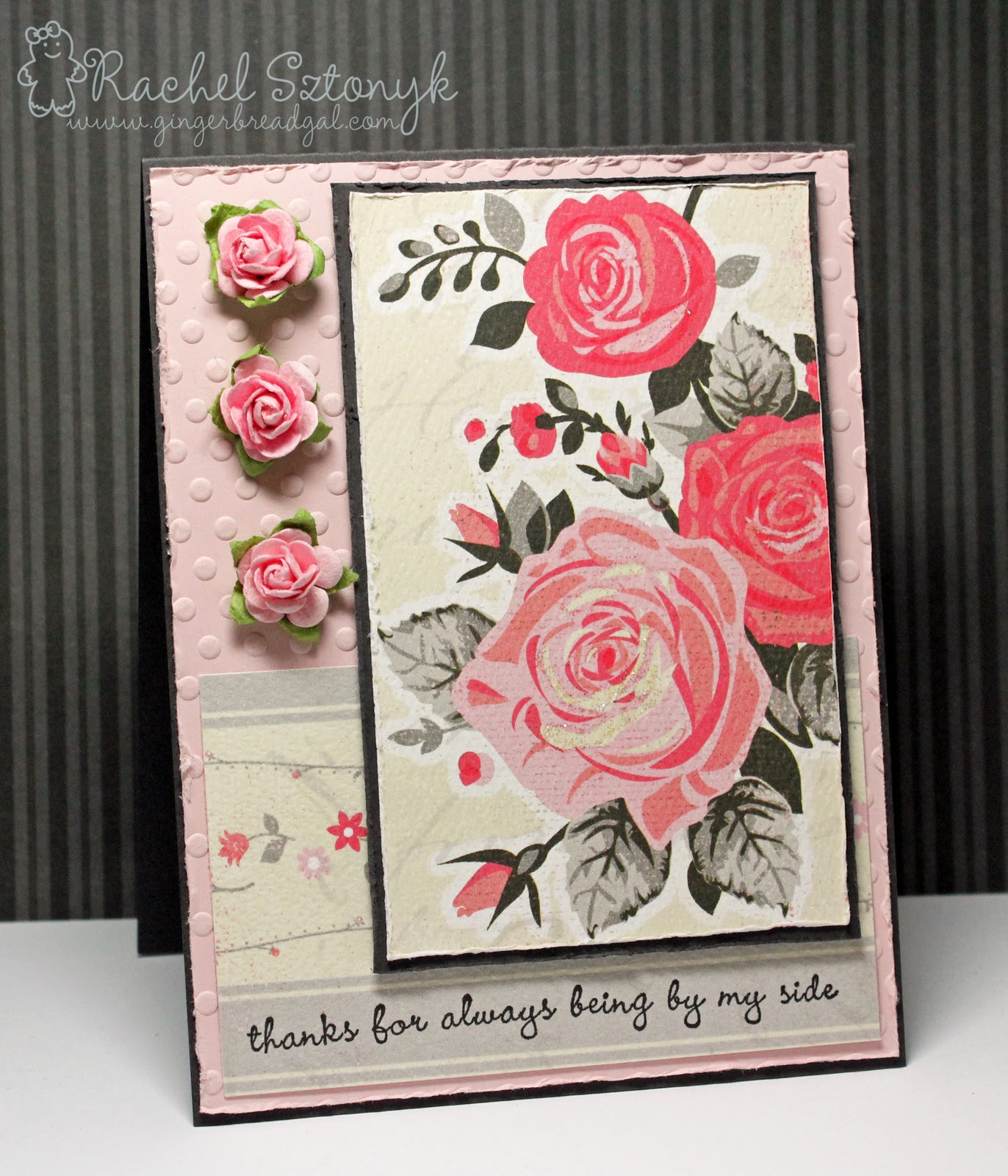 Good morning and Happy Friday! It’s almost time for another weekend! I’m not sure why that’s so exciting for me because all of the days just seem to run together into one. Half the time I’m not even sure if it’s one in the morning or one in the afternoon! *grin* But I did get a chance to create a card for this week’s sketch challenge and I hope you’ll play along too. Here it is: