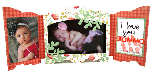 And last, but certainly not least, I have one more Shadowbox Card Kit to show off. And this one is extra special because it was Madelyn’s very first stamping project! Yesterday I mentioned that these Shadowbox Card Kits would make great decor for your mantel with photos of your kids. Well, I thought that was a great idea so I decided to try it myself!