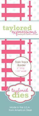 nephews is turning three next month so I kept him in mind as I made this card. I started by stamping the images in Memento Tuxedo Black ink and colored them with Copics (R08, BG45, BG49, YR23, YR14, YR18, YG03, YG17, E34, E57, N3, N5) to match the My Mind’s Eye Out of the Blue patterned paper. I added Crystal Stickles to the window on the engine and red Tiny Twinkles to the wheels of each train car. I also used a couple of our new dies on this card, the Train Track Border and the Sprockets die set. The Train Track Border is a 2 piece border die. I cut the railroad ties from a woodgrain patterned paper and then cut the rail from black cardstock and pieced over the top. I cut the sprockets from coordinating cardstocks and added glitter brads to the center.