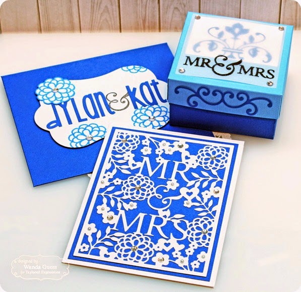 Wanda’s Notes: Greetings! Wanda here, and I’m so excited to share my first post on the TE Blog! My projects for today are a wedding ensemble I made for a dear friend’s recent wedding. Taylored Expressions has so many wonderful products that are perfect for wedding cards and gifts. And, since we are crafty gals, we can use these awesome products to make the cards in the wedding colors – one of my favorite things to do. It takes personalization to a whole different level!