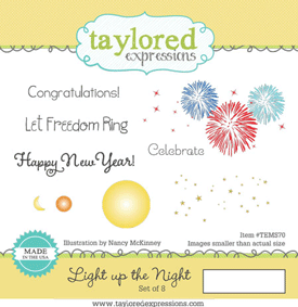 You may look at all of these goodies and think that everything looks very Patriotic, and no doubt you’ll see some fabulous Patriotic projects along the blog hop today. However, several of these stamps and dies will serve multiple purposes in your stamp collection (gotta love versatility!). So for my first project I used Light Up the Night and City Skyline to make this chic birthday card: