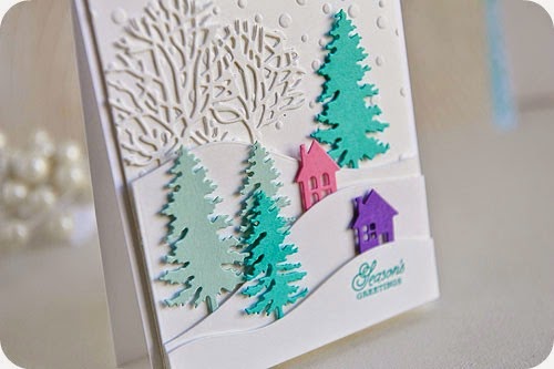 tucked them in behind the snowy hills. Last of all, I added foam tape to the