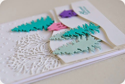 snowflakes from the Snowfall Embossing Folder. I then cut out three snow