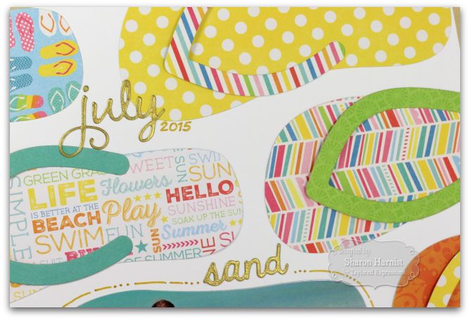 positioning my photo, I die cut lots of flip flops out of lots of patterned paper, mixed them up, and adhered them around