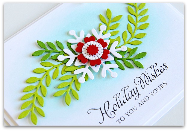 the snowflake and flower onto the greenery with some foam tape.Big Holiday wishes to you!