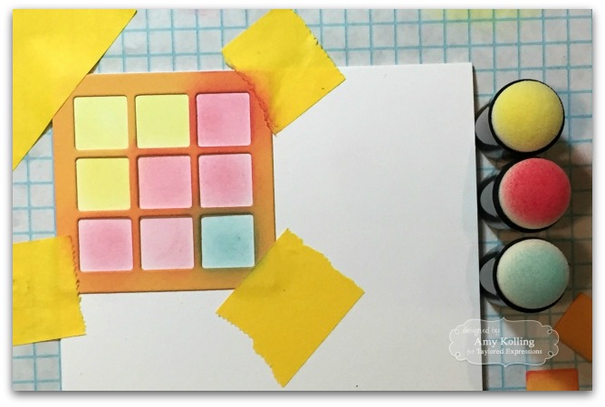 card with Post-It Note tape (you can also use washi or removable tape.) Using sponge daubers, I sponged on yellow,