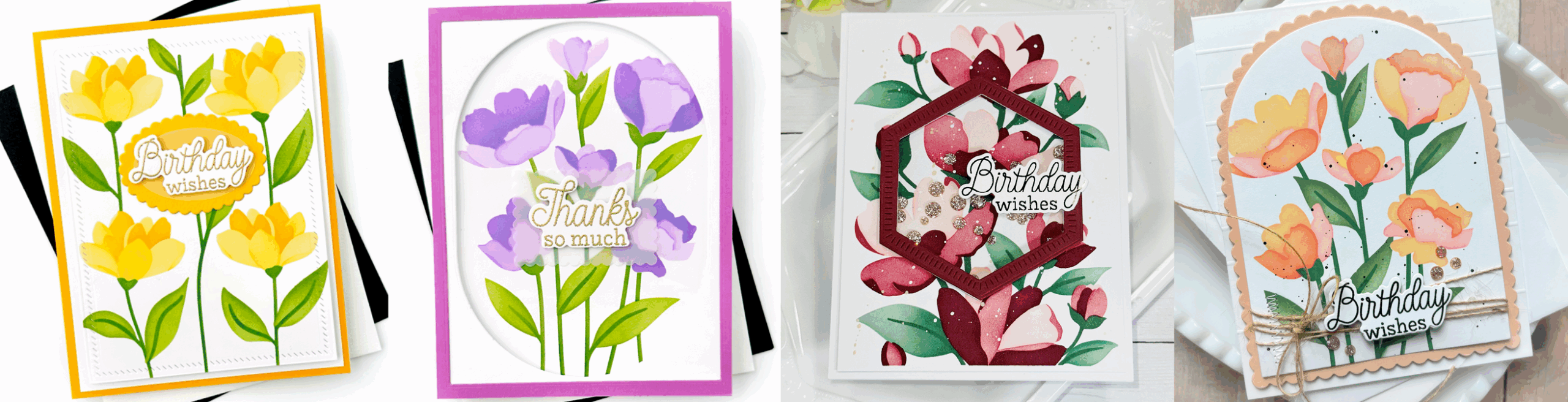 The kit has sold out but we still have plenty of inspiration to share! Scroll for a rainbow of Timeless Blooms inspiration from our Creative Team, then join Susan Block live at 10 AM CT for crafty fun!