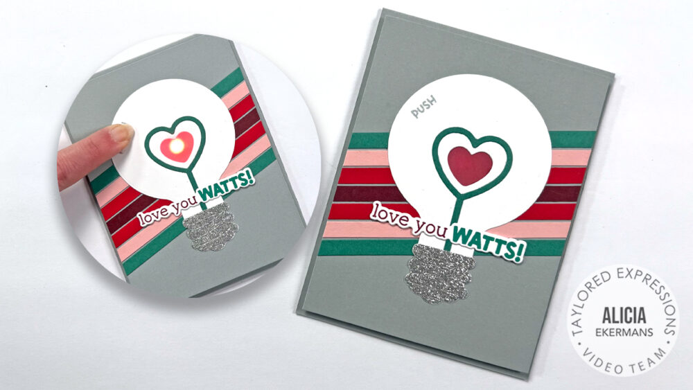 In today’s featured video, Alicia Ekermans uses Lightbulb Moment + Light It Up & coord Dies + Pear Blossom Press One Light to create a Valentine that could be given to anyone! She kept her design simple with a striped background to keep the lightbulb as the focal point. Click below to watch how she creates it!