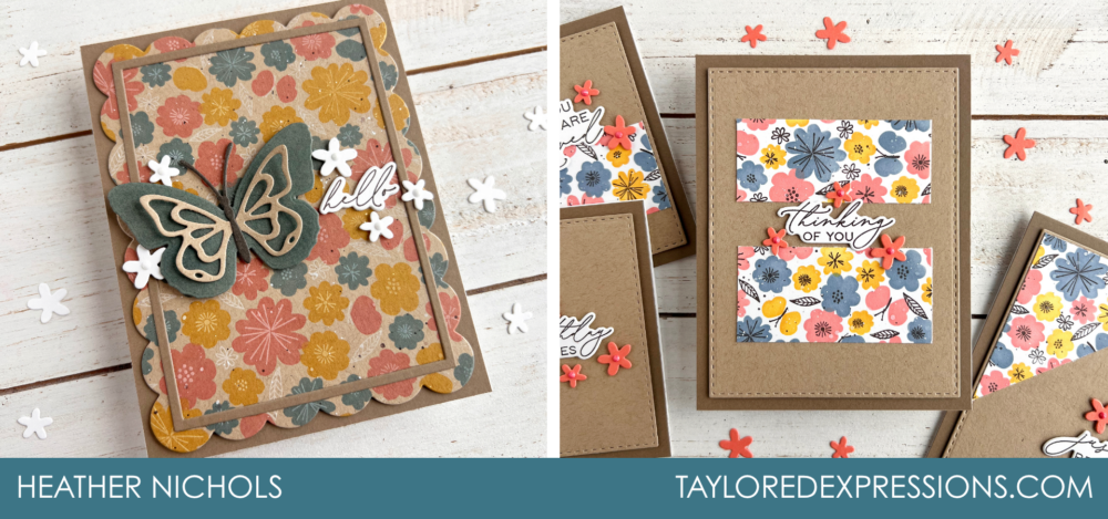 TE Designer Heather Nichols showcases the versatility of the Florals & Flutters Cardmaking Kit with these warm, nature-inspired designs. Her layered butterfly card highlights how beautifully the florals pair with dimensional elements, creating a rich and eye-catching focal point.