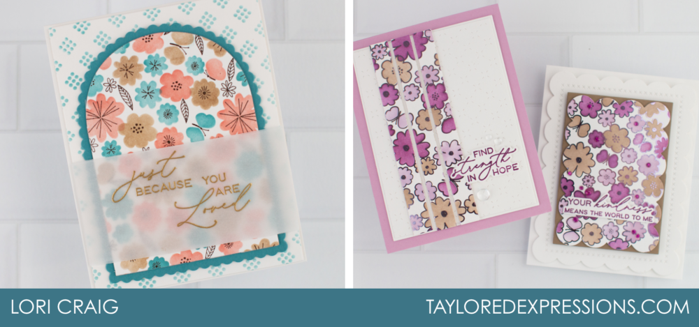 TE Designer Lori Craig brings a soft, elegant touch to the Florals & Flutters Cardmaking Kit with these beautifully detailed designs. Her use of vellum, layering, and subtle color palettes creates a light and airy feel that lets the florals shine.