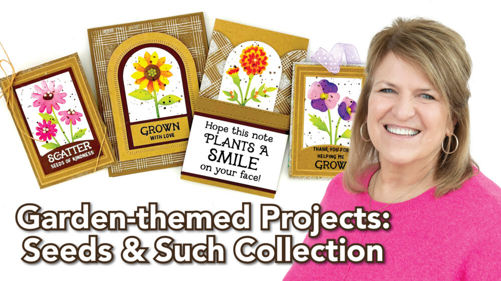 Join TE Design Team member Sue Banker at 10 AM CT as she brings the Seeds & Such collection to life with a variety of charming, garden-themed projects! In this video, Sue shares how to build layered seed packet cards using coordinating stamps, dies, and stencils to create beautifully detailed floral designs.